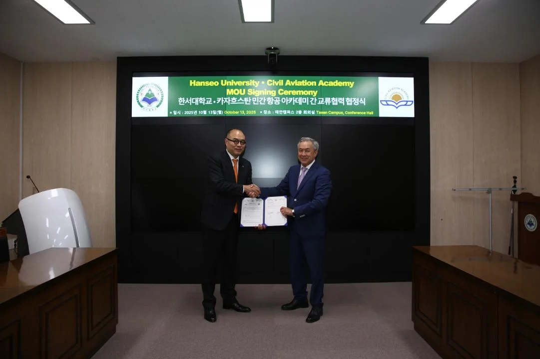 Азаматтық авиация академиясы Корея Республикасының Хансео университетімен авиациялық білім беру мен мамандар даярлау саласындағы әріптестікті дамытуға бағытталған өзара түсіністік туралы меморандумға (MOU) қол қойды.