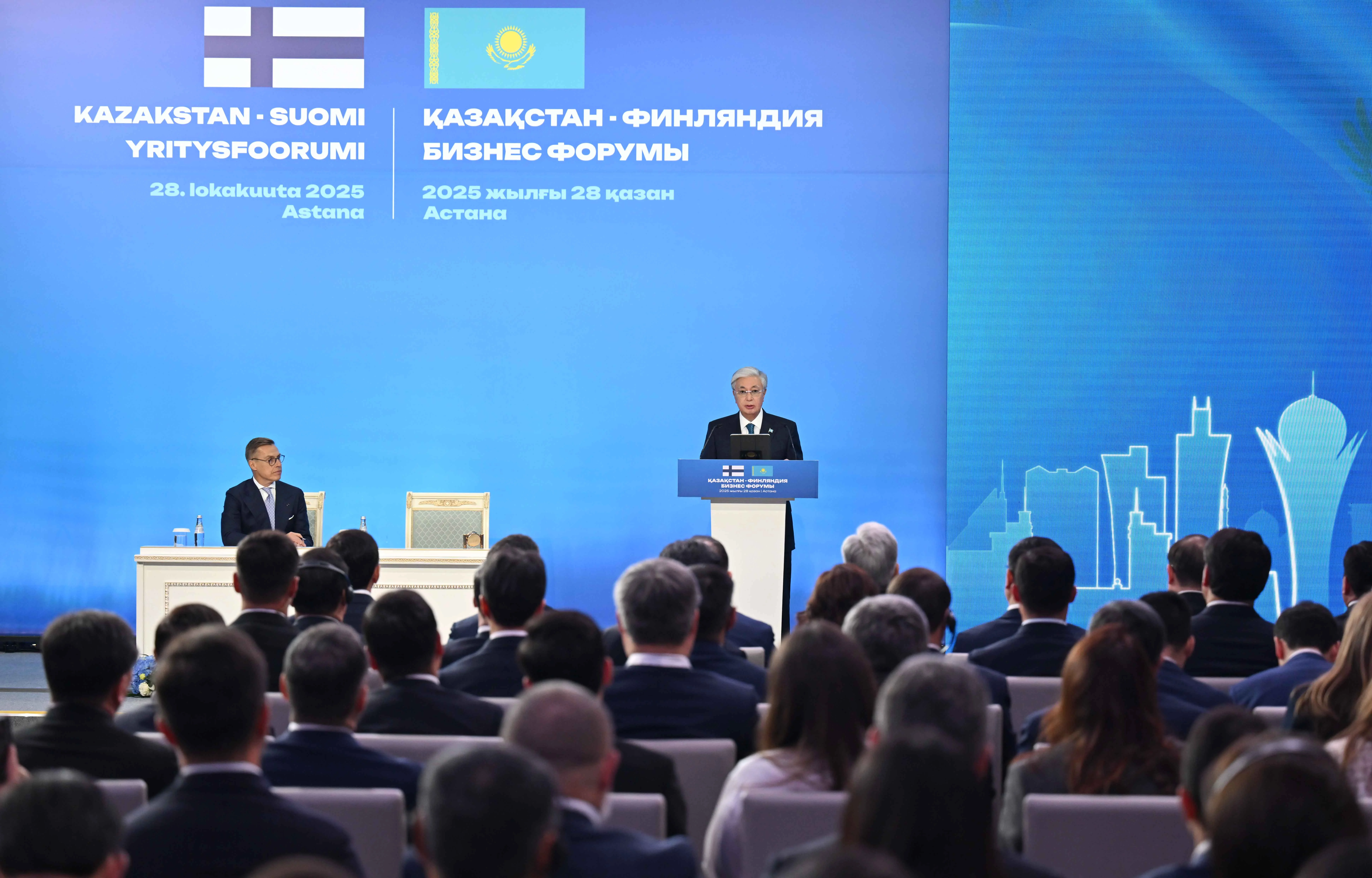 – Біз құбылмалы, болашақты болжау қиынға соғатын, күрделі геоэкономикалық әлемде өмір сүріп жатырмыз. Мұндай кезде бизнес шын мәнінде тұрақтылықты қажет етеді. Бүгін Қазақстан мен Финляндия арасында саяси деңгейде келісімдер жасалды. Ал осындай уағдаластықтар тұрақтылықты қамтамасыз етеді. Бұдан бөлек, өзара түсіністік жөніндегі меморандумдарға қол қойып, құжаттар алмастық, – деді Александр Стубб.