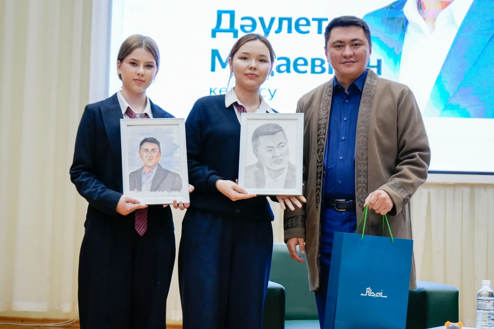 Кездесу соңында «Асқар тау» әкелер клубының жетекшісі қонағымызға ақ тілегін айтып, құрмет ретінде шапан жапты. Зияткерлер әннен шашу шашып, өнерлі оқушыларымыздың кездесу барысында қолынан шыққан қонақтың портреті салынған суреті естелікке тарту етілді.