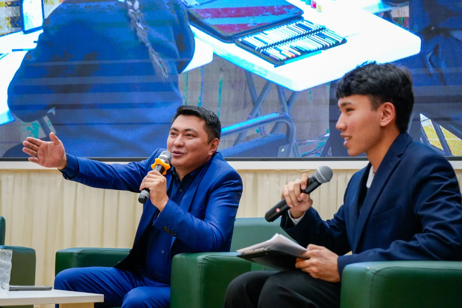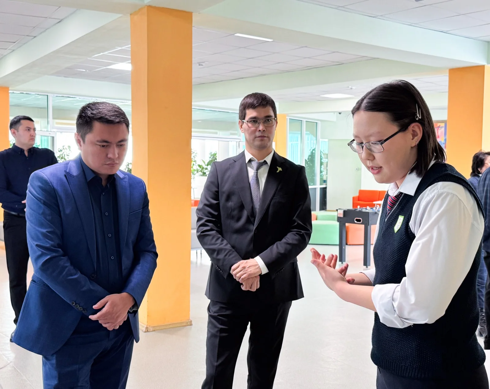 Кездесу басталмас бұрын депутат мектеп пен жатақхананың тыныс-тіршілігімен танысып, оқушылардың ғылыми жобаларын тамашалады. Зияткерлер өз зерттеулері туралы толық мағлұмат беріп, бағыттары мен жетістіктері жайлы баяндады. Дәулет Мұқаев жобалардың өзектілігін атап өтіп, тың бастамаларға сәттілік тіледі.