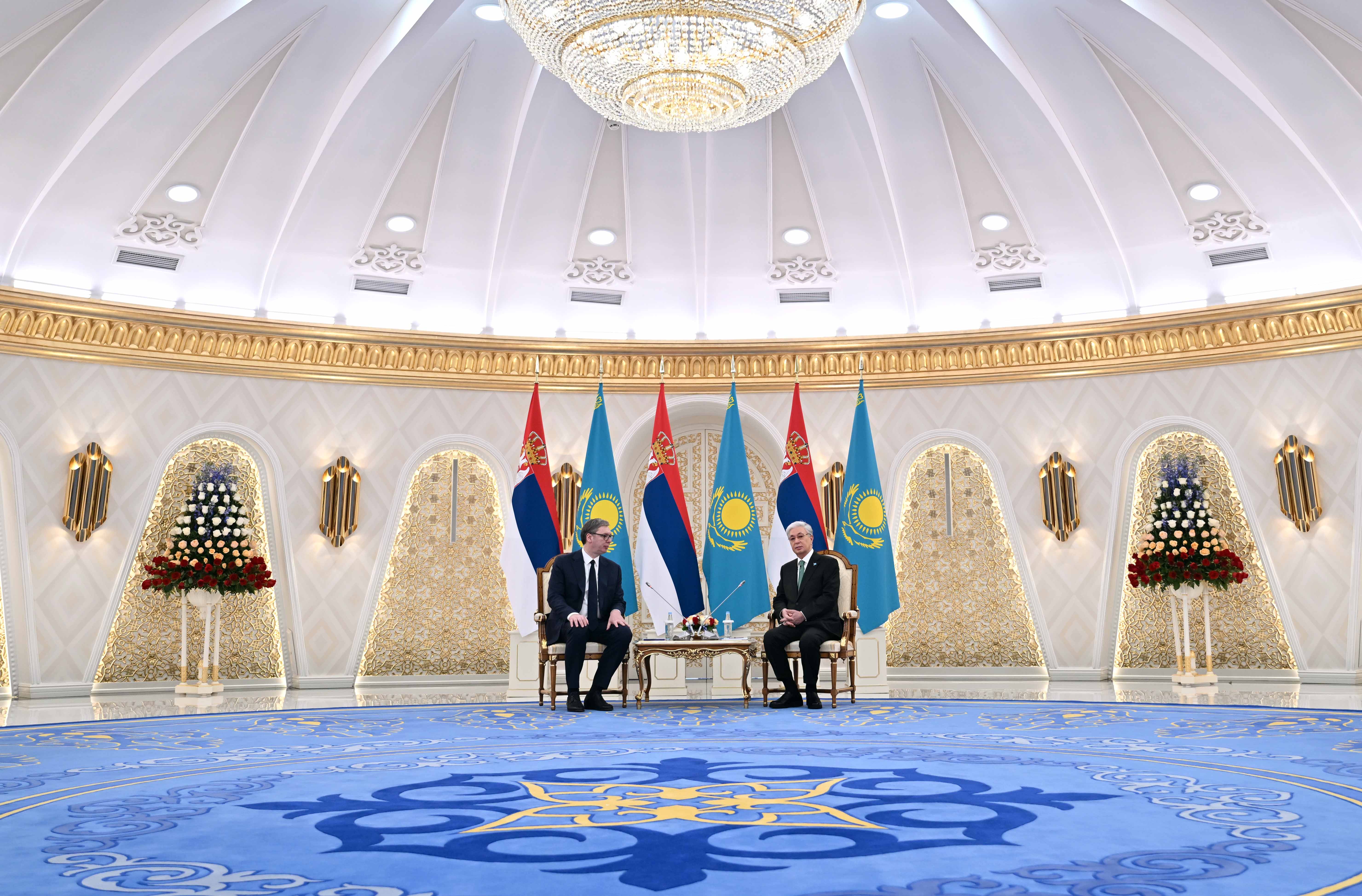 Мемлекет басшысы меймандарға ілтипат білдіре отырып, бұл сапар Қазақстан мен Сербия арасында дипломатиялық қатынас орнағанына 30 жыл толу қарсаңында өтіп жатқанына назар аударды.