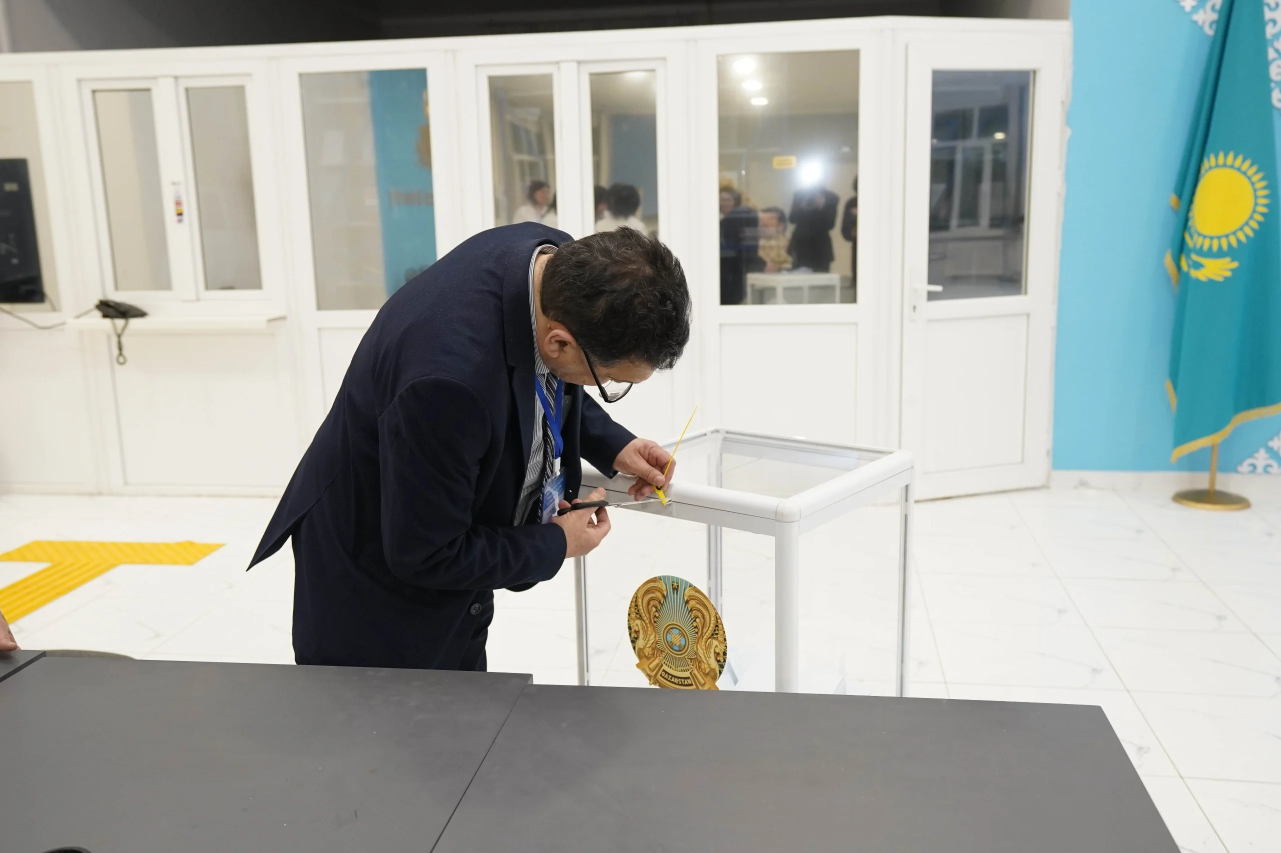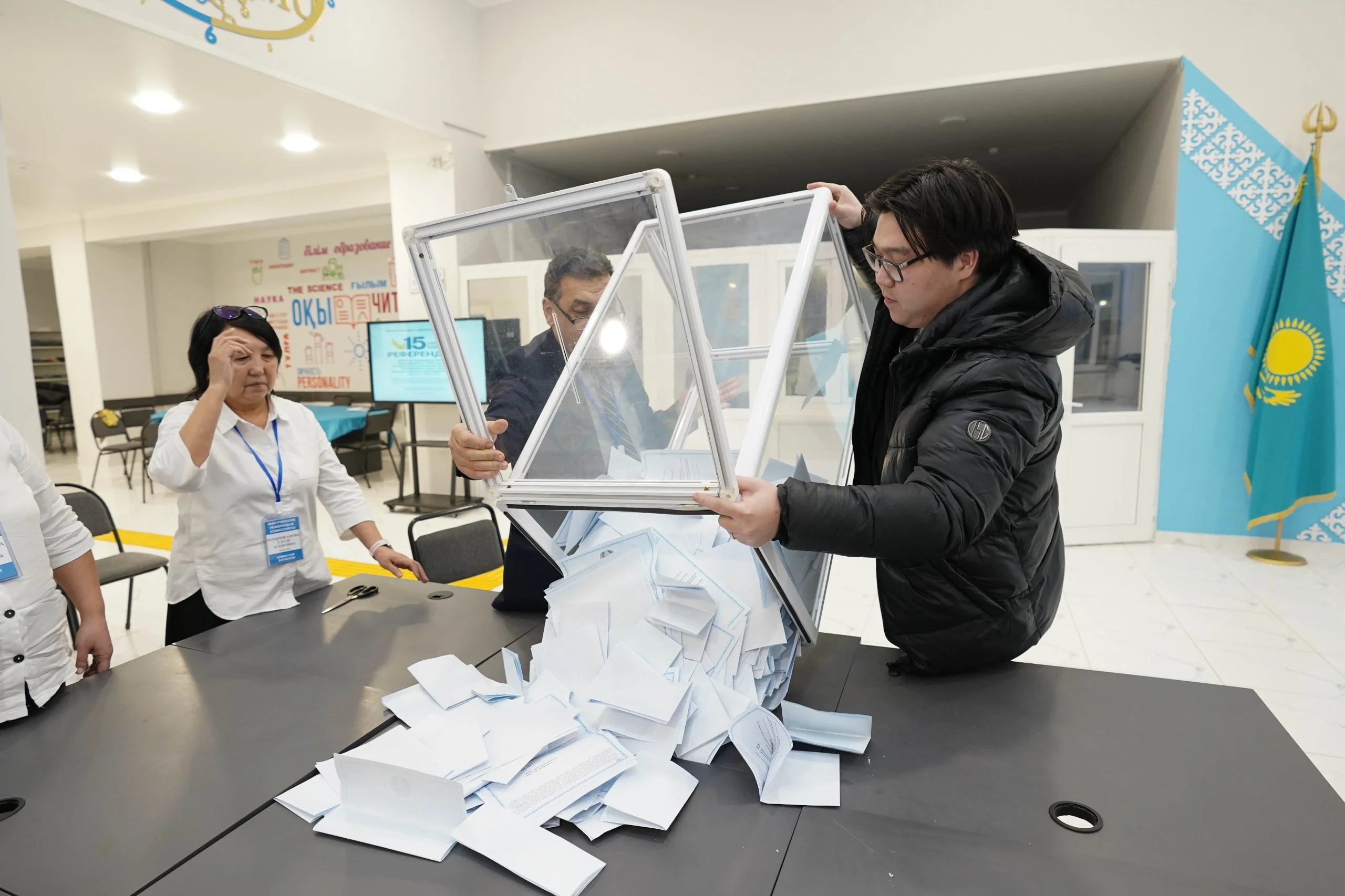 Учаскеде бақылаушылар мен комиссия мүшелері бірлесе жұмыс істеп, дауыс беру процесінің ашық әрі әділ өтуін қамтамасыз етті.
