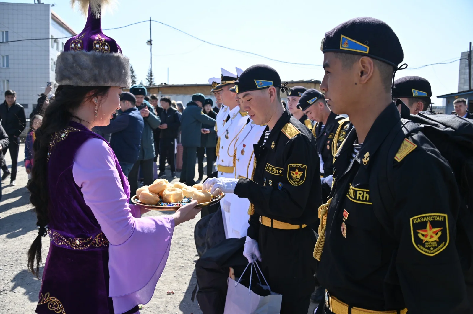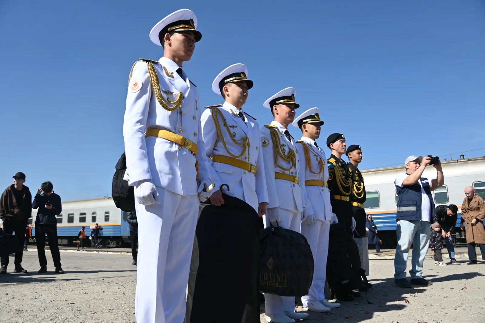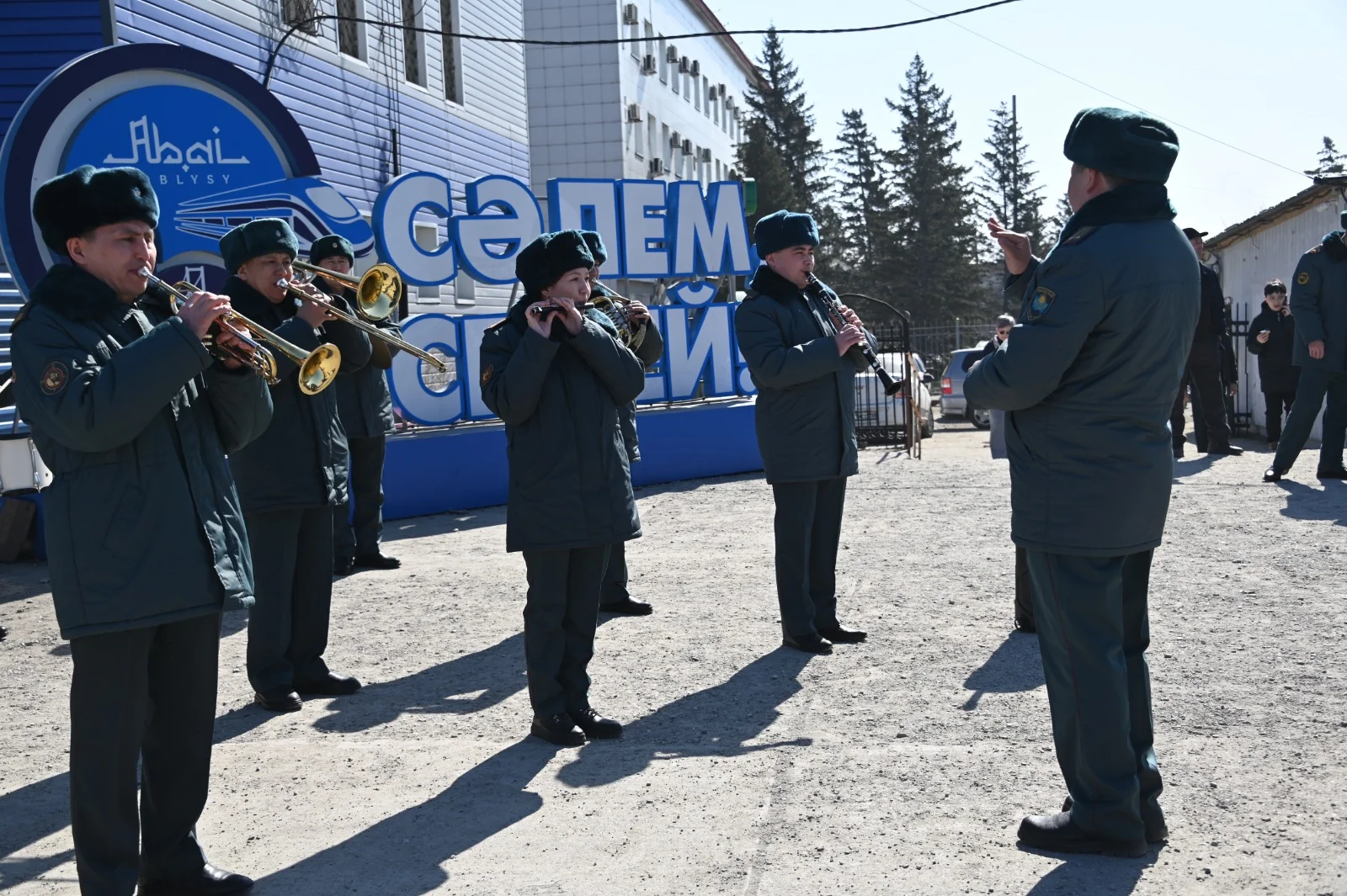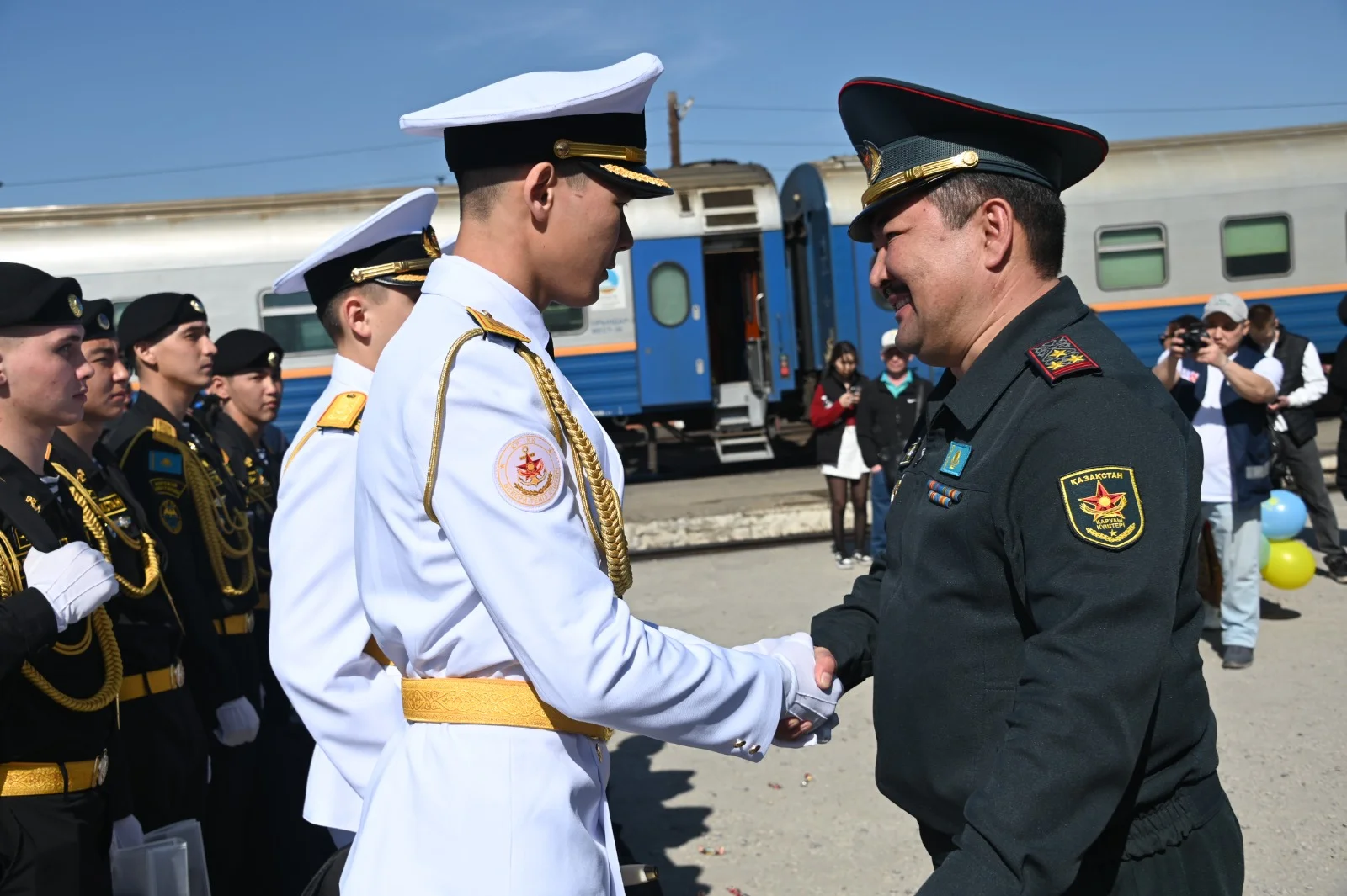 Темір жол бекетіне келген сарбаздарды ата-аналары, туыстары және достары қарсы алды. Әскери қызметшілердің оралу құрметіне әскери оркестрдің қатысуымен салтанатты рәсім ұйымдастырылды, бұл іс-шараға ерекше көңіл-күй сыйлады.