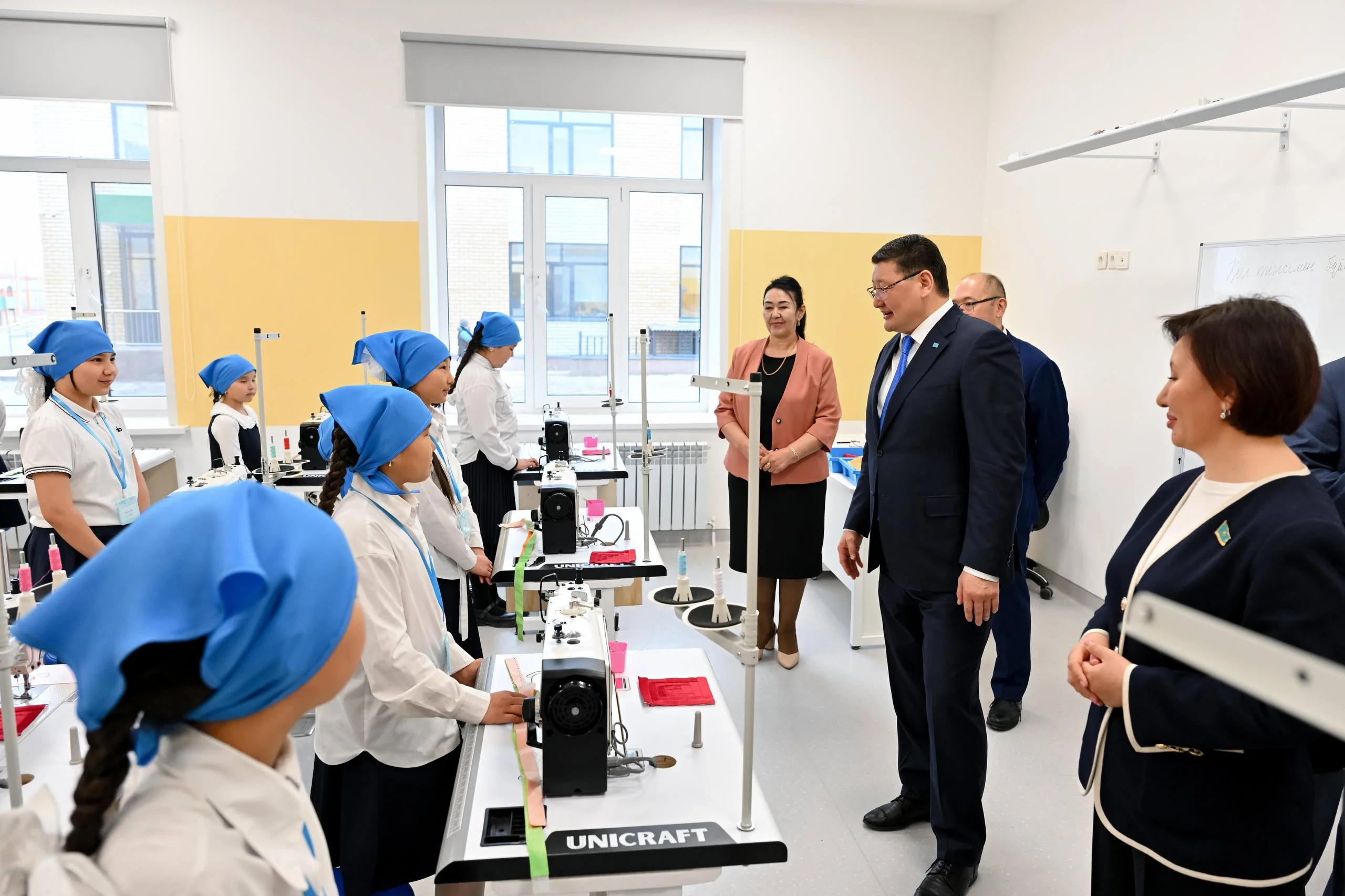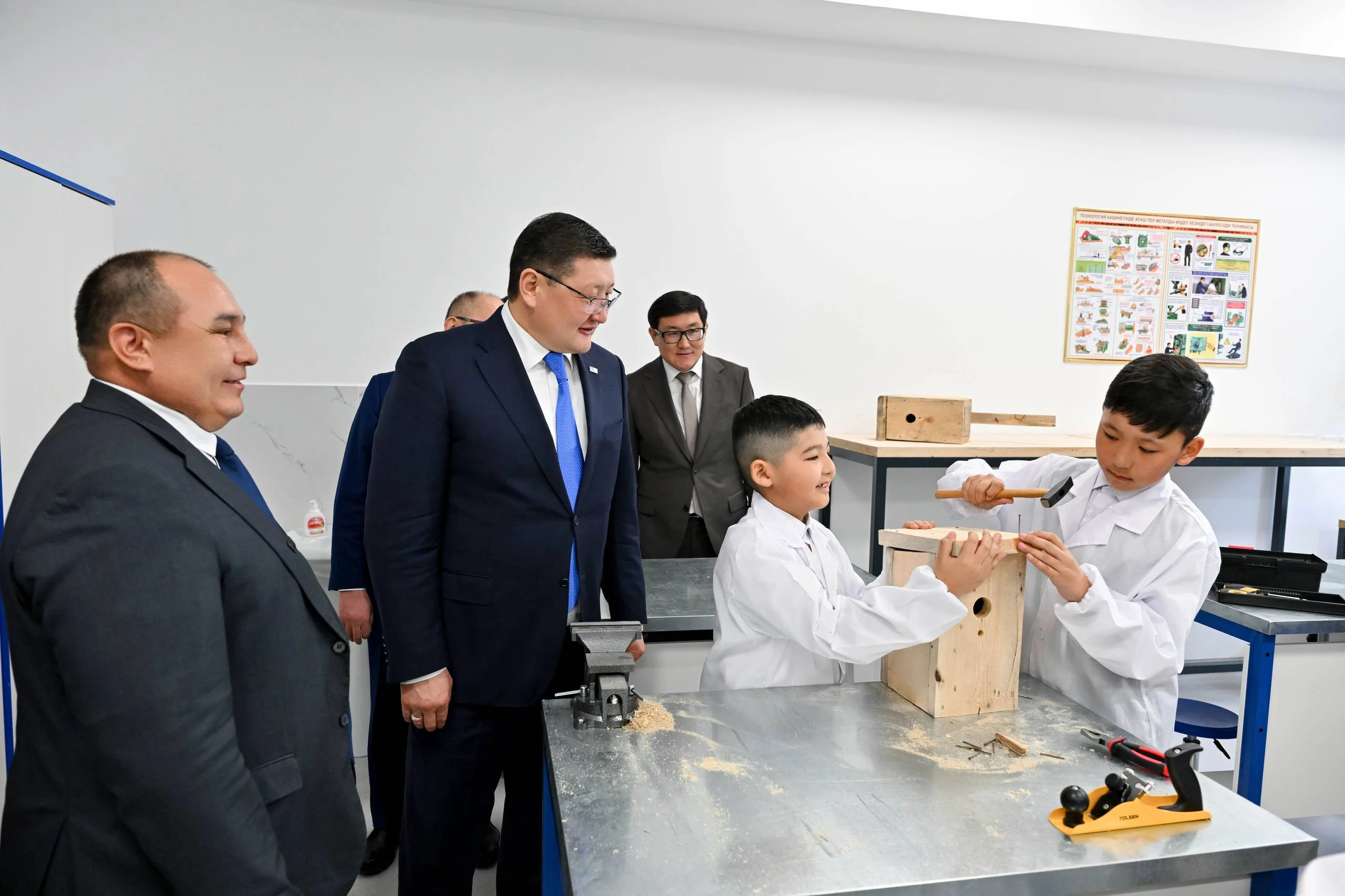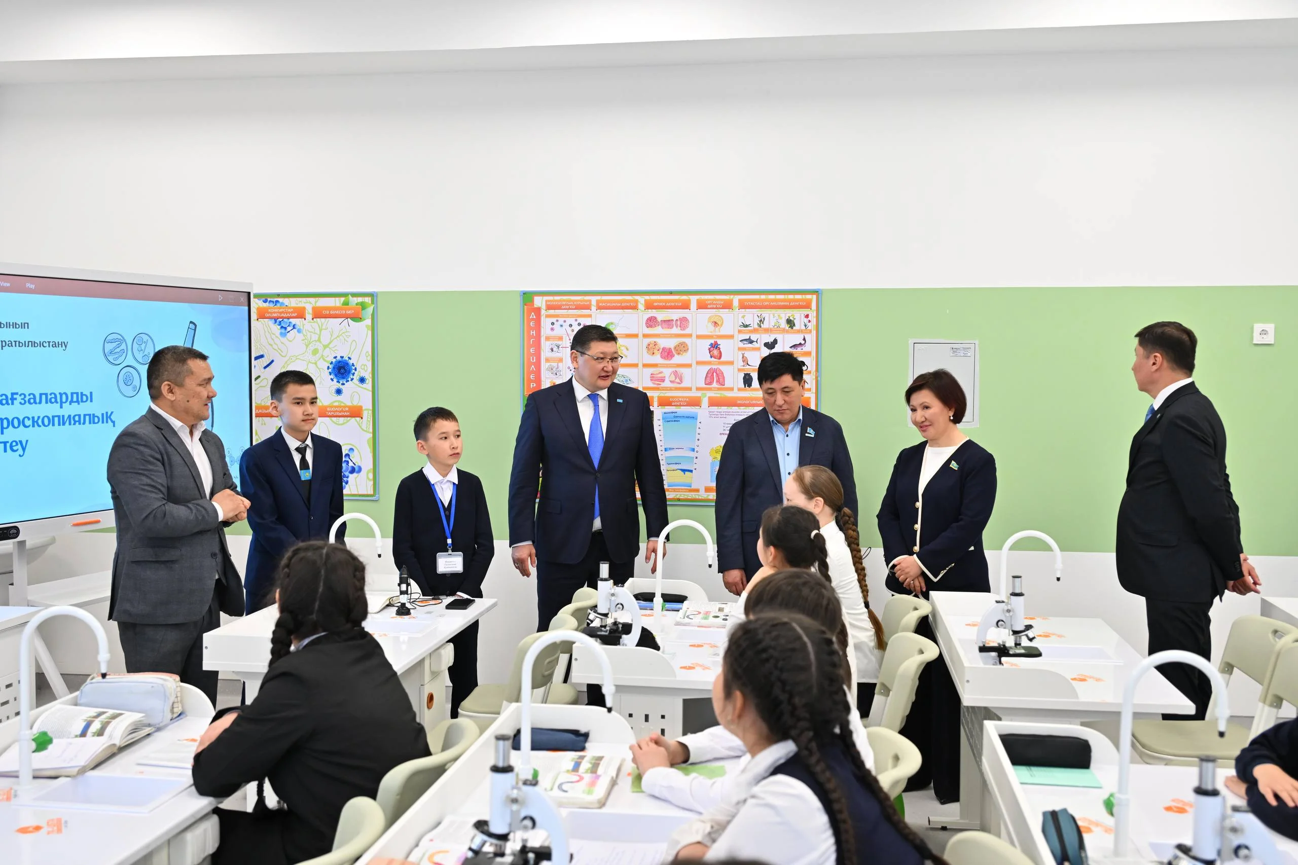 Облыс әкімі құрметті қонақтармен бірге мектептің сыныптарын аралап, оқушылармен, мұғалімдермен пікірлесті.