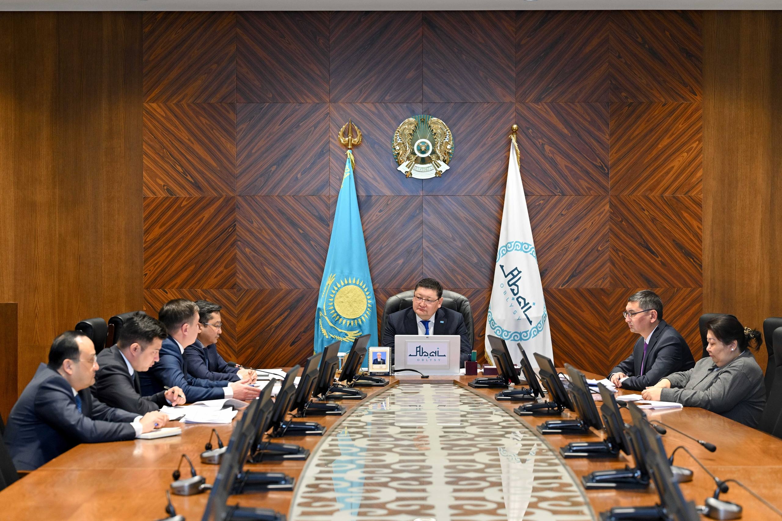 Аким области Абай проводит прием руководителей управлений, где заслушивает отчеты