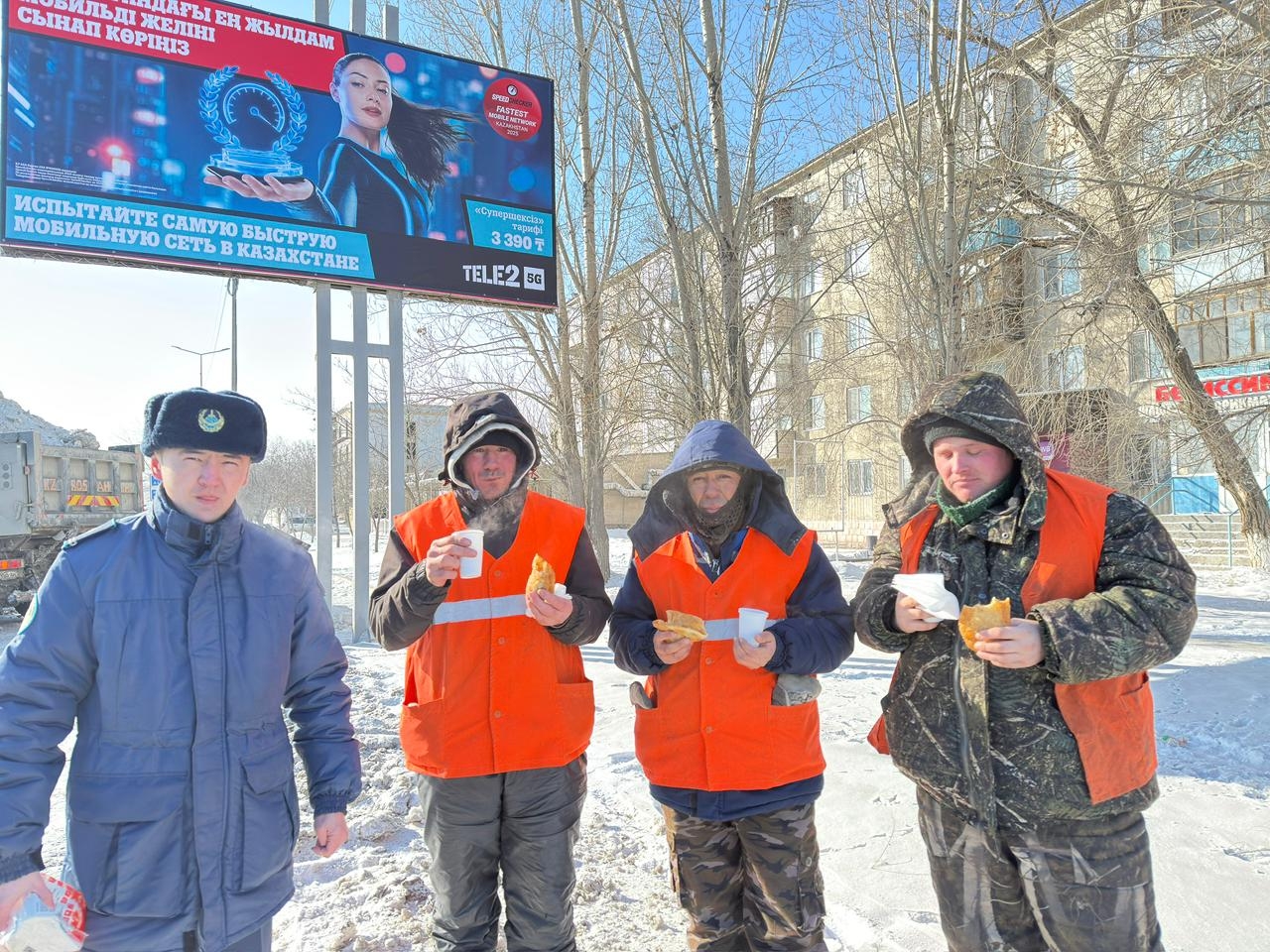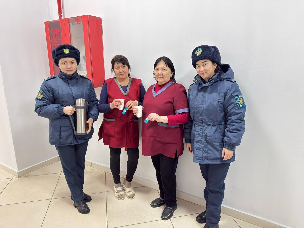 В знак уважения к их труду сотрудники учреждения средней безопасности УИС па области Абай организовали встречу, в ходе которой выразили слова благодарности и поддержки. Тружеников угостили горячим чаем, свежей выпечкой и сладостями, что стало приятным и своевременным знаком внимания в морозный день.