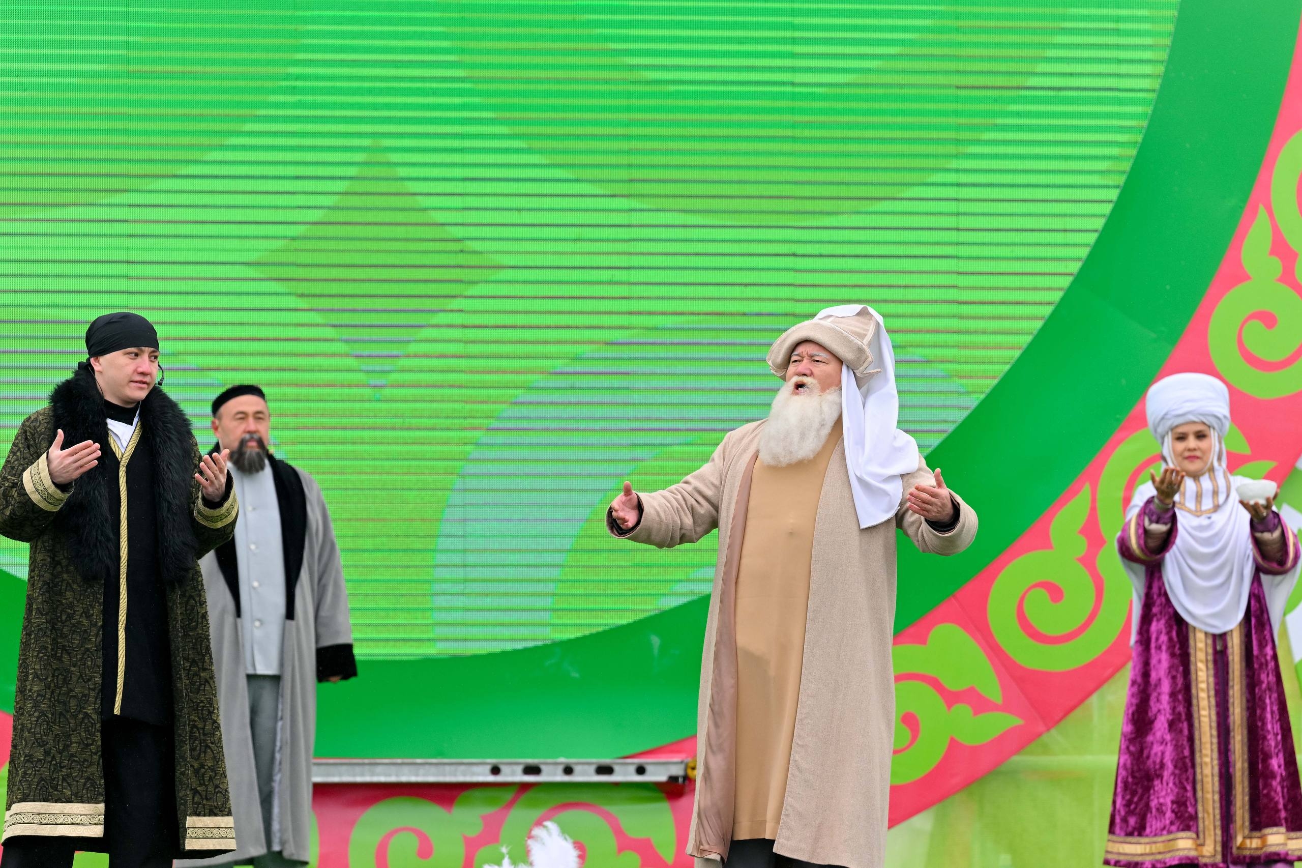 На площади была установлена сцена и возведены юрты. Фестиваль начался с театрализованного представления, в котором была показана традиция встречи старших и младших со словами «Амал құтты болсын!» и обряд благословения – аластау.