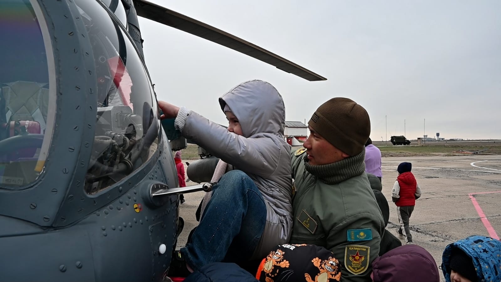 Одним из самых ярких моментов стало практическое знакомство с техникой: дети смогли посидеть за штурвалом вертолётов Ми-17 и Ми-24, а также побывать внутри боевой командной машины «Арлан».